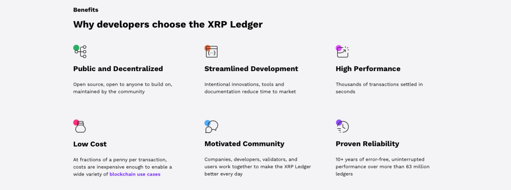 Premier pilier : la performance on-chain. XRPL annonce une exécution en 3 à 5 secondes, un débit autour de 1 500 transactions par seconde, et des frais typiques de l’ordre de 0,0002 $ par transaction, des chiffres cohérents avec son positionnement autour des paiements. Dans un scénario long terme, ces métriques comptent davantage que l’analyse technique, car elles conditionnent l’intégration dans des parcours financiers réels.