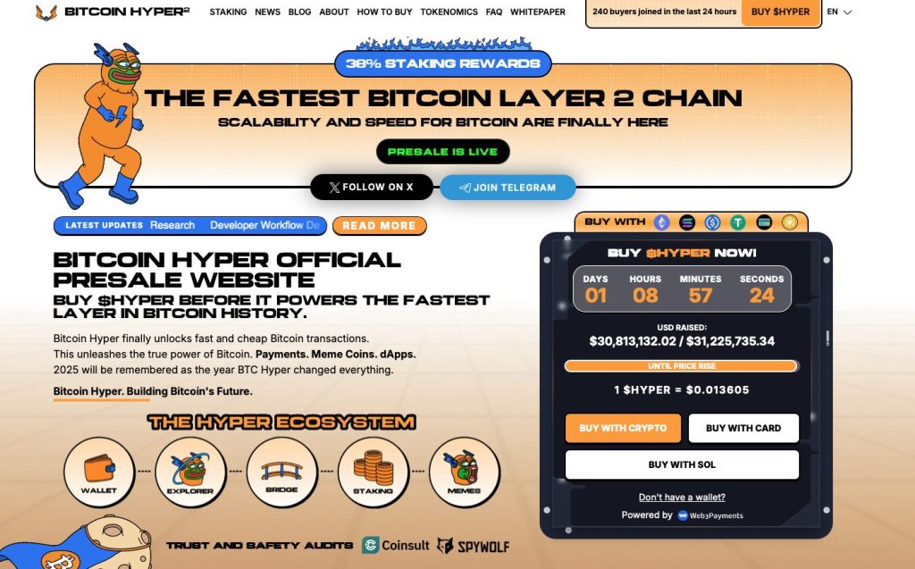 Bitcoin Hyper (HYPER) se présente comme une solution de seconde couche visant à accélérer les transactions et à ouvrir l’accès aux smart contracts, tout en gardant Bitcoin comme actif pivot. Le récit est simple : capter une partie de l’activité DeFi et applicative qui, historiquement, s’est construite ailleurs, mais en profitant de la profondeur de marché et de Bitcoin.