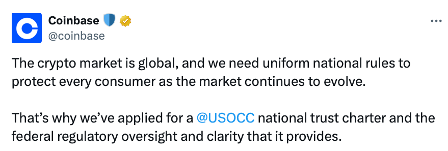 Coinbase vise le National Trust Charter : une banque désormais ?