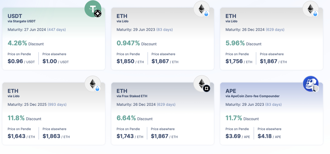 Par exemple, comme le montre la figure ci-dessous, vous pouvez acheter des stETH, soutenus par Lido, avec une décote de 5,96 %, pour obtenir des stETH PT, qui peuvent être remboursés en stETH le 26 décembre 2024 (date d’échéance). Cette approche permet aux investisseurs d’acheter des actifs futurs avec une décote et d’exécuter des stratégies d’arbitrage avancées.