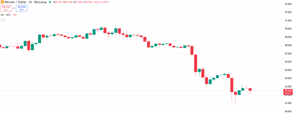 Le mouvement baissier observé sur le marché crypto a pris une ampleur rarement vue ces derniers mois. Bitcoin a chuté jusqu’à 81 058 dollars, un niveau inédit depuis neuf mois, entraînant l’ensemble du marché dans son sillage.