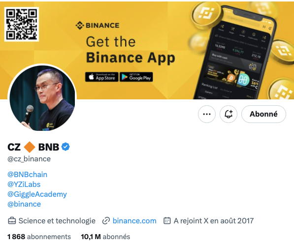 Avec l’abandon de l’action civile contre Binance et CZ, ce dernier a toutefois été interdit de reprendre la gestion et la direction de certaines fonctions. Pour autant, dans sa biographie X, le compte officiel de @binance est de retour. Signe d’une réintégration de CZ dans un rôle stratégique qui n’est pas prohibé par les déboires ayant eu lieu sous l’ère Gensler ?