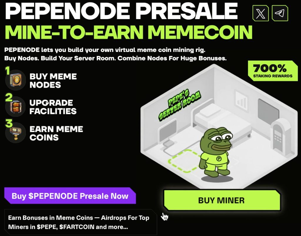 Le plus intéressant, c’est que PepeNode transforme cette expérience en un jeu virtuel de minage, mêlant la mécanique de la DeFi à l’univers des mèmes. Avec une prévente déjà au-delà de 1,8 million de dollars, les premiers adoptants peuvent encore obtenir des jetons PEPENODE avant les listings sur les gros échanges crypto.