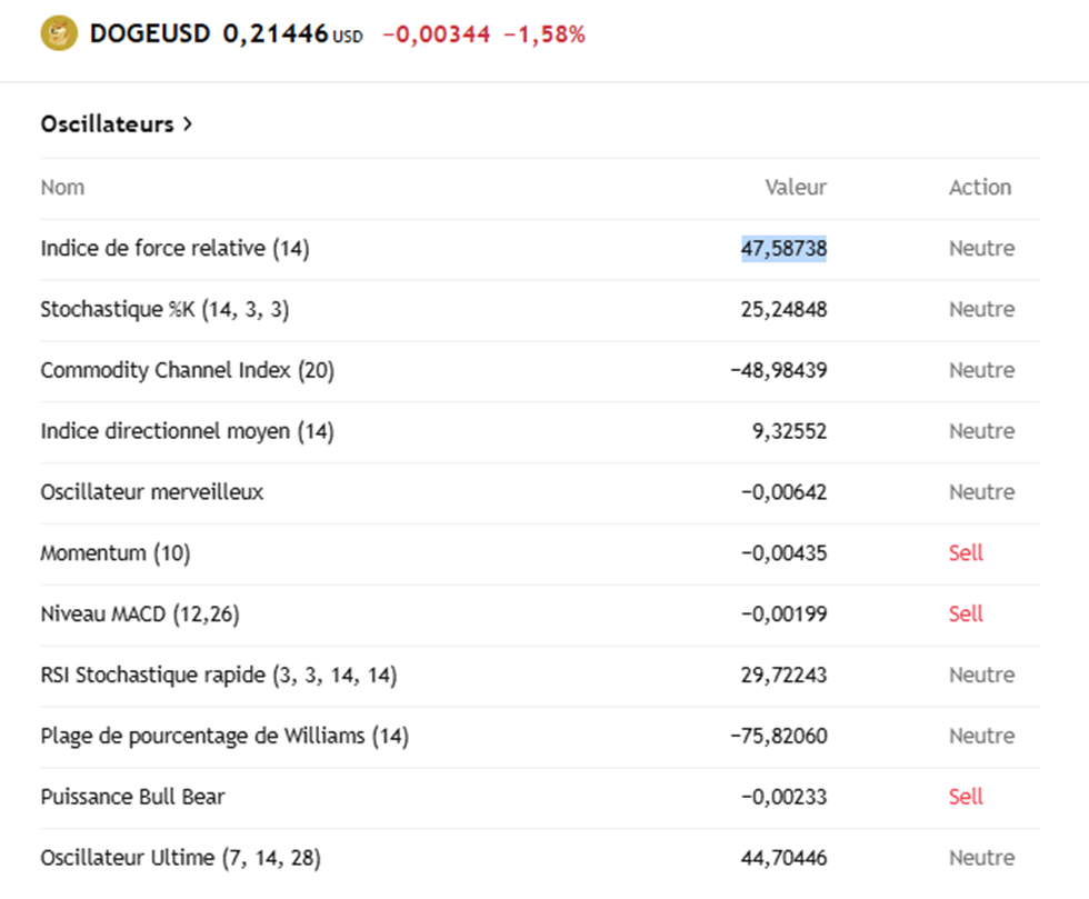 Les indicateurs techniques restent encourageants. Le RSI oscille autour de 47,58738, une zone neutre mais au penchant haussier. Pendant ce temps, le MACD indique un possible basculement de dynamique en faveur des acheteurs. En effet, ce marqueur converge vers un possible croisement positif.