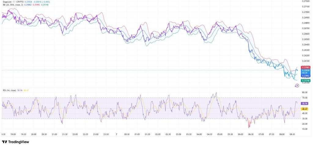 Ensuite, il faut du volume, au moins 1 milliard de DOGE échangés, pour prouver que le mouvement est solide. Si le prix revient tester les 0,27 $ sans retomber, c’est encore mieux. Pour l’instant, les indicateurs restent calmes, ce qui laisse de la marge avant une vraie surchauffe.