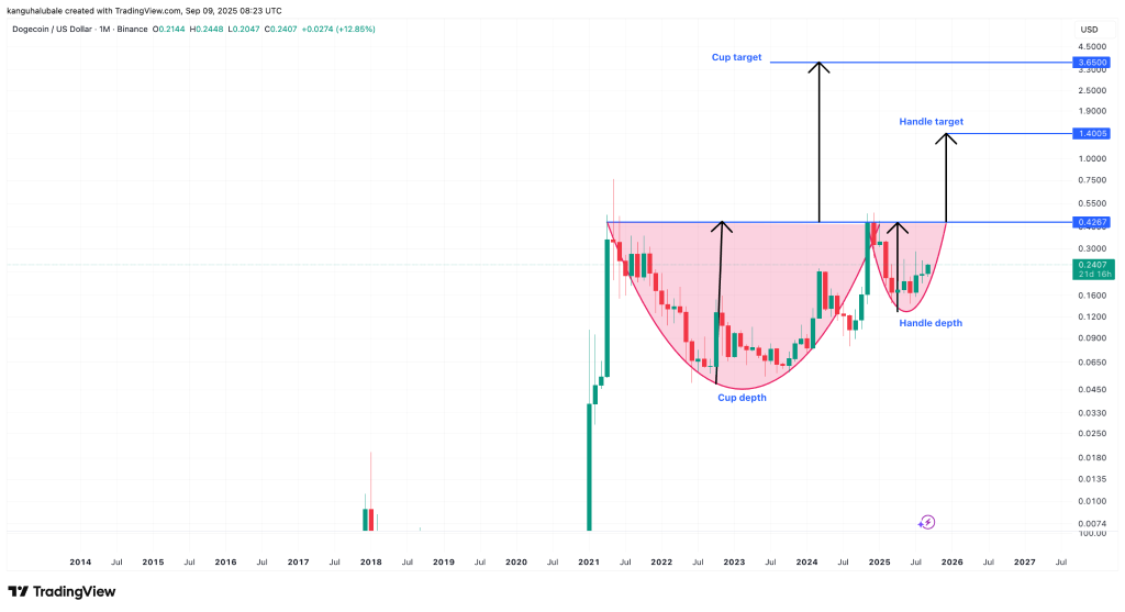 Depuis le 1er septembre et son point bas à 0,2047 $, Dogecoin est sur une hausse de 20% avec un prix oscillant autour de 0,24$. En fait l’optimisme croissant autour du lancement du premier ETF Dogecoin aux États-Unis participe certainement à ce regain d’intérêt.