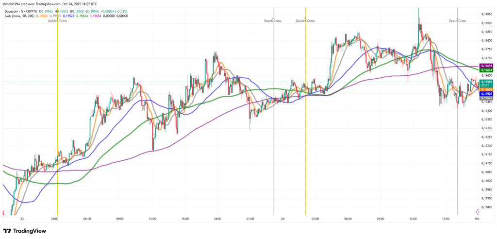 Depuis plusieurs séances, DOGE consolide autour de 0,19 $. Cette phase de pause masque une bataille intense entre acheteurs et vendeurs. Pour l’heure, la zone de résistance clé identifiée par les analystes se situe entre 0,20 $ et 0,22 $.