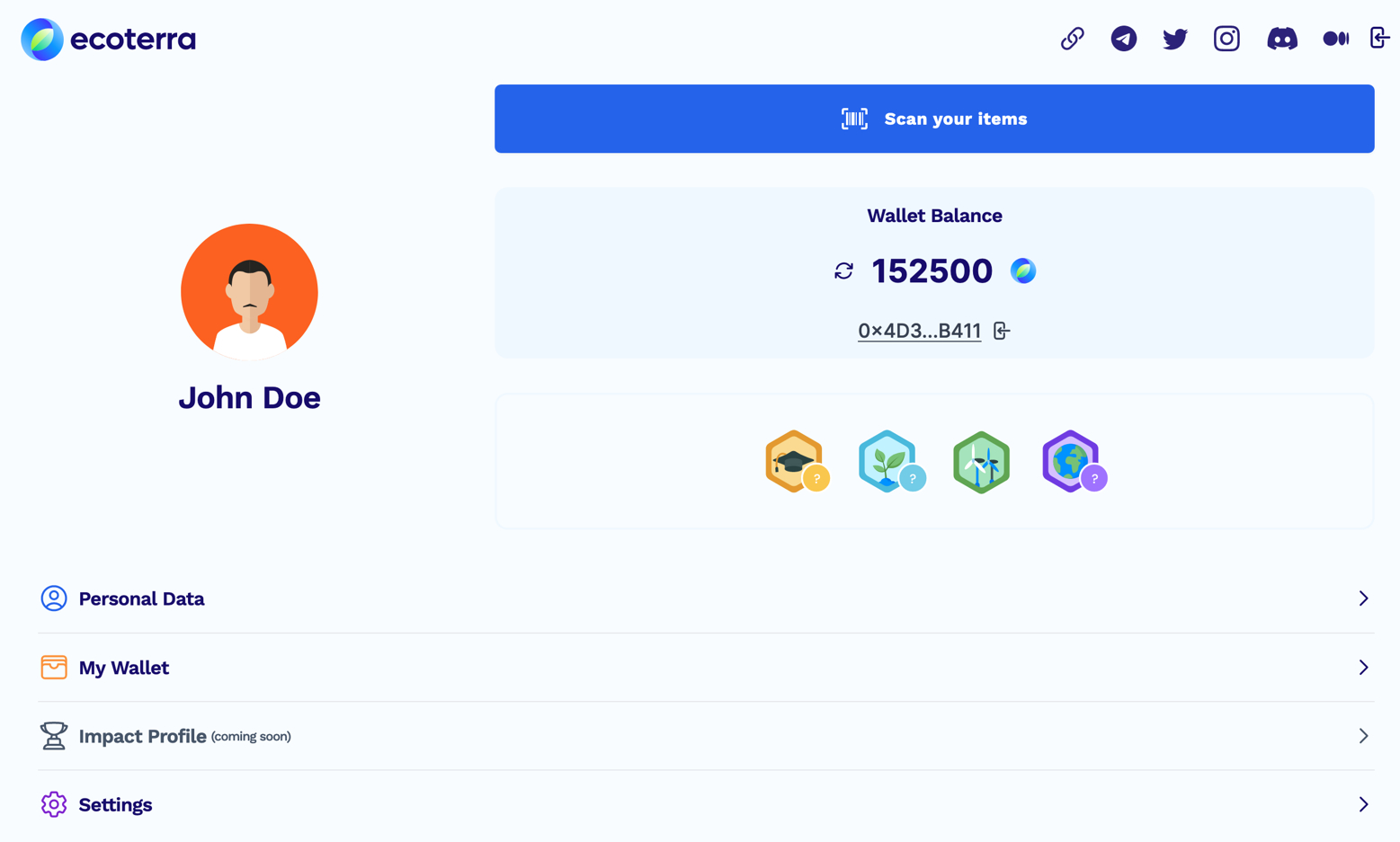 Grâce à la transparence de la blockchain, ecoterra permet également aux particuliers et aux entreprises de suivre leurs pratiques respectueuses de l’environnement par le biais d’un “profil de suivi d’impact” (Impact Trackable Profile).