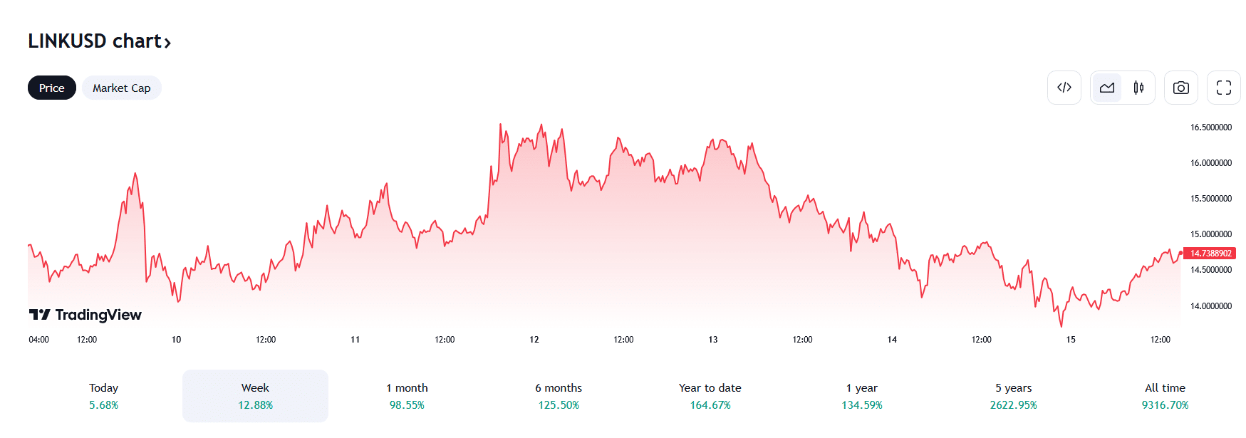 Les défenseurs de LINK se sont acharnés à maintenir le prix au-dessus du seuil de 14 $, montrant leur détermination à soutenir la crypto-monnaie. Cet optimisme malgré la tempête récente suggère une confiance en la capacité de Chainlink à surmonter les fluctuations du marché.