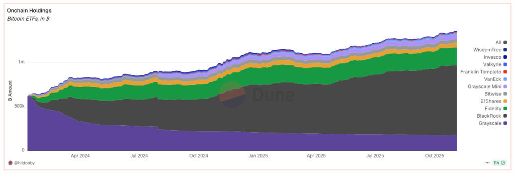 Aux portes des 100 milliards de dollars, c’est devenu l’ETF le plus rentable de BlackRock avec des performances supérieures à tous les autres produits. Ainsi, malgré les frais, c’est une solution gagnant/gagnant, à la fois pour l’émetteur et pour les investisseurs qui s’y exposent. Par ailleurs, le produit domine très largement concurrence. Derrière, on retrouve Fidelity avec plus de 200K $BTC on-chain.