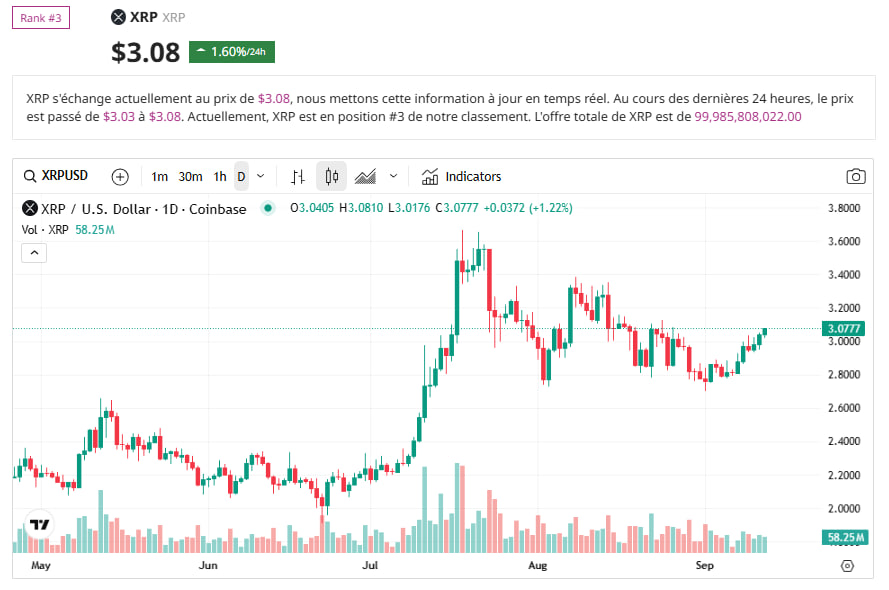 En parallèle, le marché se structure. Le CME a déjà lancé des contrats à terme XRP, Coinbase suit la même voie. Les rails sont posés, il ne manque plus que l’ETF pour activer le turbo.