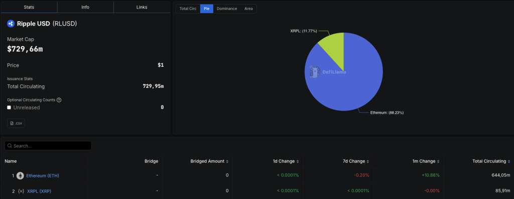 Par exemple, le RLUSD de Ripple connaît une belle croissance, s’approchant progressivement des 800 millions de dollars de capitalisation selon les données publiées sur DeFilLama. Avec une croissance de 10 % sur ethereum les trente derniers jours, la convergence de cette blockchain avec Ripple n’a jamais été aussi importante.