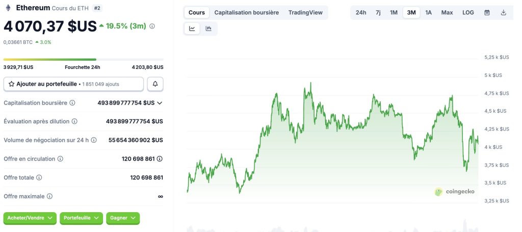 Tant qu’ETH tient des zones de support au-dessus de 4 000 dollars, le marché peut défendre un scénario de reprise graduelle. En cas de cassure avec volumes, la route s’allongerait nettement pour rejoindre une trajectoire à cinq chiffres.