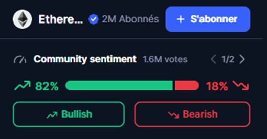 Sur CoinMarketCap, ce sont désormais plus de 80 % des participants qui annoncent un ETH à 5 000 $ en 2025. C’est bien la preuve que le sentiment haussier reste largement dominant.