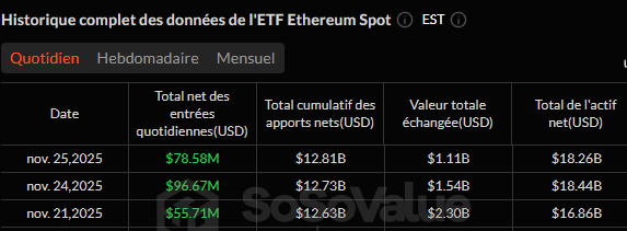 Après dix jours éprouvants où les ETF spot sur ETH ont enregistré près de 1,28 milliard $ de sorties, le vent tourne. Les fonds ont attiré 230,9 millions $ en seulement trois séances.