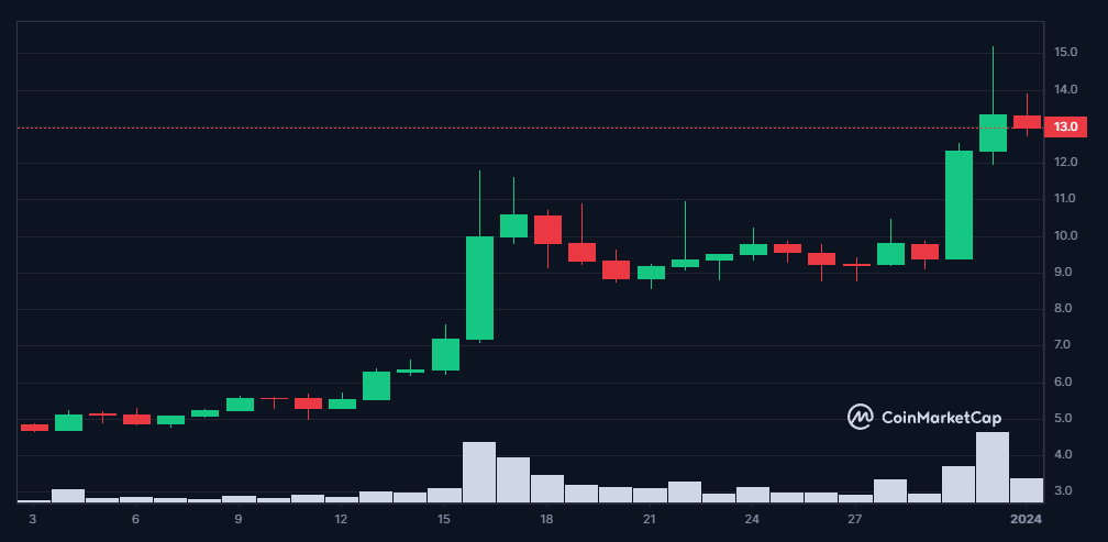 L’ICP a enregistré des gains importants lors de la reprise de novembre, sa valeur ayant augmenté de plus de 100 %. Si la tendance haussière actuelle se poursuit, le prix devrait bientôt atteindre un niveau de résistance de 14 dollars.