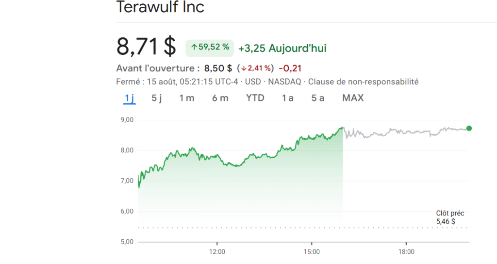 Pour sécuriser l’initiative, Google garantit les obligations locatives de Fluidstack à hauteur de 1,8 milliard de dollars. En échange de quoi, la société de Mountain View recevra des bons de souscription. Elle pourra ainsi acquérir environ 41 millions d’actions ordinaires de TeraWulf. Cette opération lui donnera la main sur environ 8 % du capital de la société de minage. Sans surprise, à la publication de la nouvelle, le cours de bourse de TeraWulf s’est envolé.