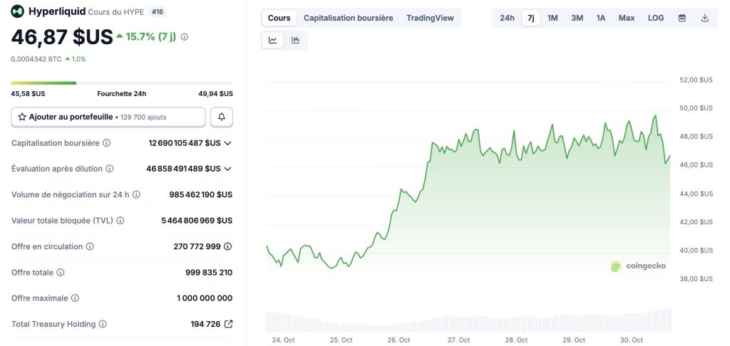 Côté marchés, HYPE se situe dans le Top 15 en capitalisation, une condition utile pour la tenue de marché d’un ETF. CoinGecko confirme la profondeur et l’activité quotidiennes. Cet ancrage de liquidité ne préjuge pas de l’avis de la SEC, mais il renforce le dossier sur le plan opérationnel.