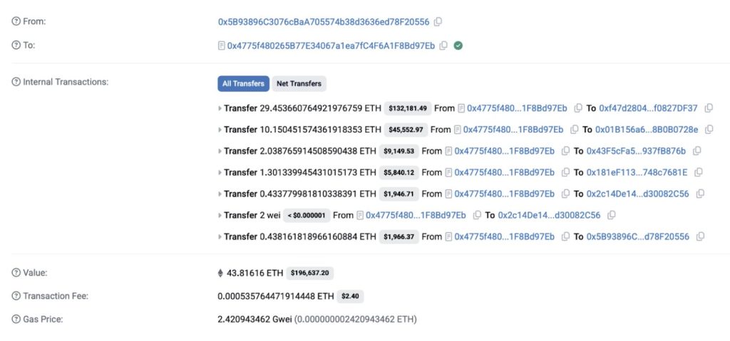 Source : https://etherscan.io/tx/0xdaf9d22a4b06ec0680e29a80448d9c1498b47bd33dc47bd120b59ee8367436e4