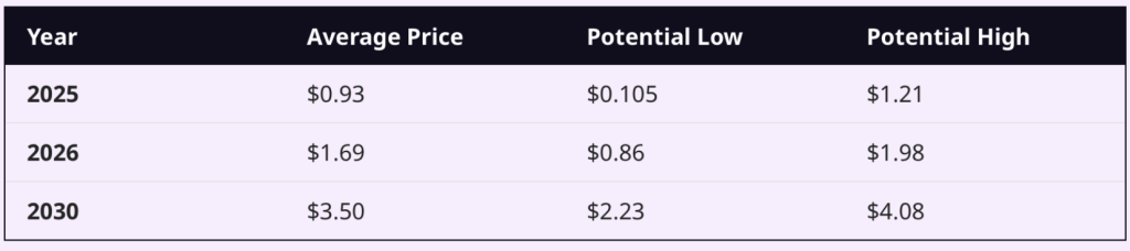 D’autres, notamment chez CryptoNews, anticipent un ATH à 1,21 dollar cette année. Au prix actuel de prévente, cela représenterait un potentiel de rendement de x11,2x, sans même de prendre en compte la dynamique plus globale du marché.
