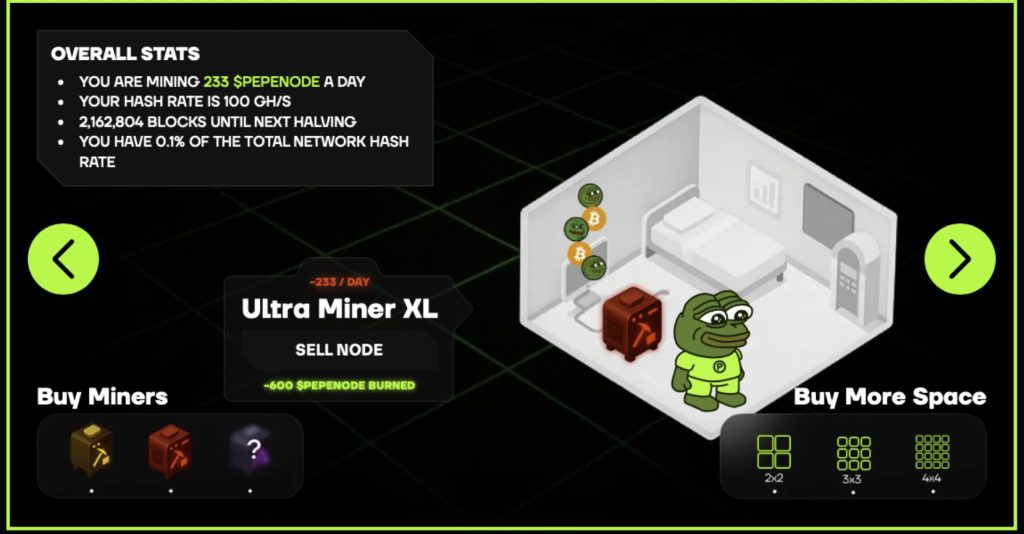 PepeNode repose sur ce même principe d’accessibilité, mais le pousse plus loin grâce à son jeu de minage virtuel. Plus votre configuration est bien faite et optimisée, plus vos chances de gagner des jetons comme le PEPE, le FARTCOIN et d’autres mème coins majeurs augmentent.
