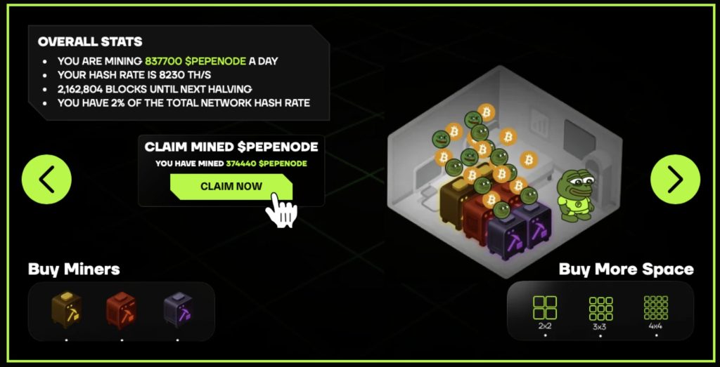 C’est là que PepeNode change littéralement la donne. Le projet mélange en effet la dimension pratique du minage avec la simplicité du staking. Ces deux composantes sont ensuite transformées en un jeu virtuel ouvert aux investisseurs particuliers.
