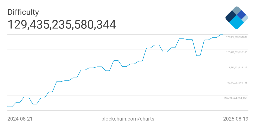 Bitcoin n’a jamais été aussi solide techniquement, ni aussi fragile économiquement. Le réseau a battu un record historique de difficulté de minage en août 2025. Une prouesse.