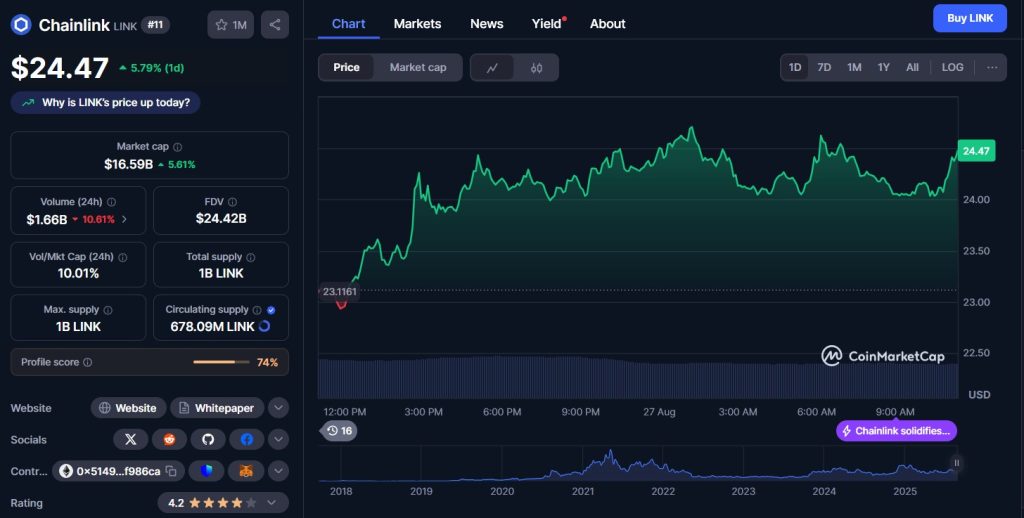 Chainlink n’est pas né d’hier, et les baleines l’accumulent discrètement. Depuis 2017, le projet fournit des oracles décentralisés à quasiment toutes les blockchains majeures. En gros, il connecte les smart contracts à des données réelles, comme les prix des actifs, les taux d’intérêt, ou même des événements climatiques. Et ça, peu d’acteurs peuvent s’en vanter.