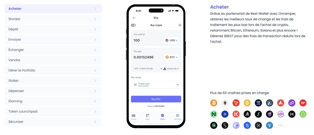 En prévente avec le jeton $BEST, ce portefeuille se distingue de la concurrence pour de multiples raisons : launchpad intégré nativement, airdrops en crypto pour les détenteurs de l’actif natif de Best Wallet, plus de 60 blockchains compatibles, rendements en staking et bien plus encore. Avec l’intégration du PIN, de la biométrie et du 2FA, conserver vos actifs sereinement n’est plus un espoir mais une réalité.