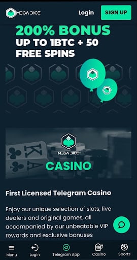 Dans le cadre d’une percée dans l’adoption des casinos cryptos, Mega Dice, en plus d’être disponible sur ordinateur et mobile, ouvre la voie en ouvrant le premier casino crypto au monde sous licence accessible sur l’application Telegram.