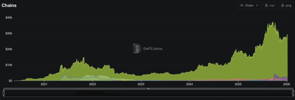 Aave reste l’un des baromètres de la finance décentralisée. En effet, début janvier 2026, son total de valeur verrouillée est d’environ 34,52 milliards de dollars, dont 28,36 milliards sur Ethereum, et plus d’1,17 milliard sur Arbitrum.