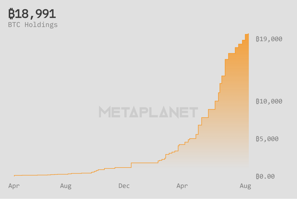 Metaplanet dépasse Tesla : près de 19 000 Bitcoins en réserve
