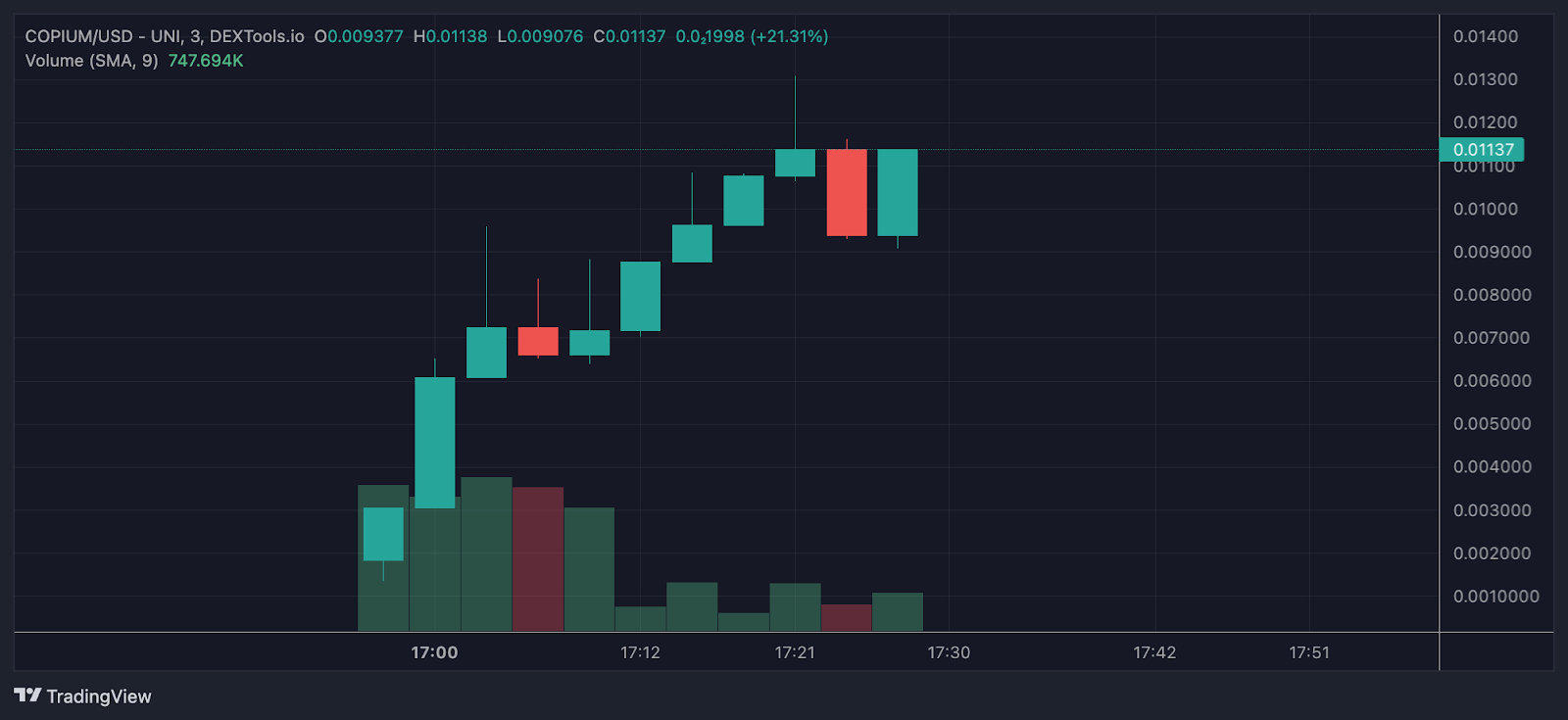 Le prix de $COPIUM pump de 400% dans les 30 premières minutes suivant son lancement