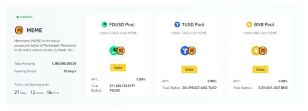 New #Binance Launchpool: $MEME@memecoin is the native ecosystem token of @Memeland, the independent Web3 venture studio by 9GAG.