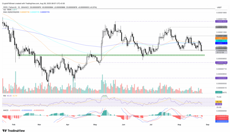 Pour inverser la tendance, PEPE doit enregistrer une clôture journalière solide au-dessus de ses résistances immédiates. Le premier objectif se situe sur la 200-day EMA à 0,00001115 $. Sans ce signal, tout rebond sera perçu comme une simple respiration dans un marché dominé par les vendeurs.
