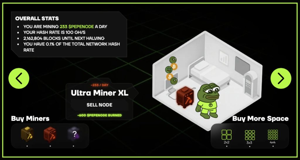 Le jeu de minage virtuel de PepeNode met fin aux problèmes liés au matériel et aux factures d’électricité. Il plonge directement les joueurs dans une salle de serveurs numérique vide, où ils doivent bâtir leur propre empire de minage virtuel.