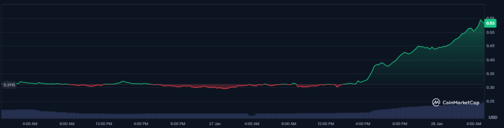 Cette dynamique organique a porté PIPPIN jusqu’à une capitalisation de plus de 240 millions de dollars lors du premier pic du supercycle des memecoins. Après une phase plus calme, le projet a retrouvé de l’élan fin 2025. Son récent sommet à près de 490 millions de dollars de capitalisation confirme ce retour en force.