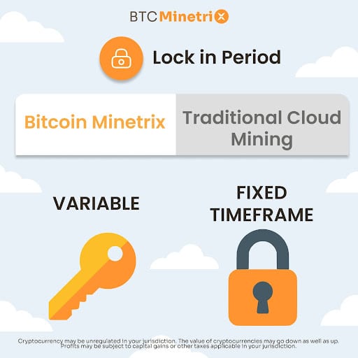 En exploitant l’efficacité de gestion et la puissance des contrats intelligents, il n’est pas nécessaire de s’enfermer dans une durée fixe. Avec le Bitcoin Minetrix, l’utilisateur qui décide de staker garde le contrôle total, ce qui permet à chacun de choisir la période pendant laquelle il souhaite miner.