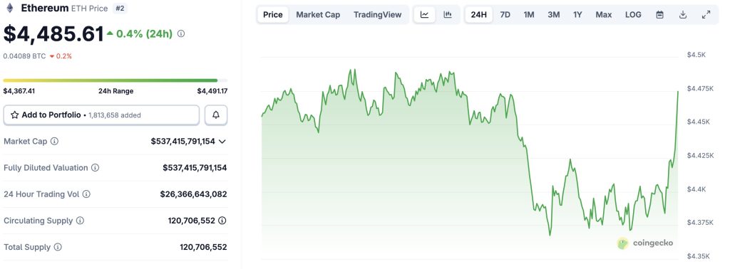 Du côté des indicateurs, le RSI se rapproche d’une zone de survente, signal qui attire l’attention des traders en quête de points d’entrée. Les volumes confirment aussi une prudence accrue, mais ils restent suffisants pour alimenter des mouvements brusques en cas de cassure. Dans ce contexte, Ethereum conserve son rôle de baromètre : l’actif se maintient autour des 4 500 $, renforçant la thèse d’une reprise plus large si le bitcoin tient ses supports.