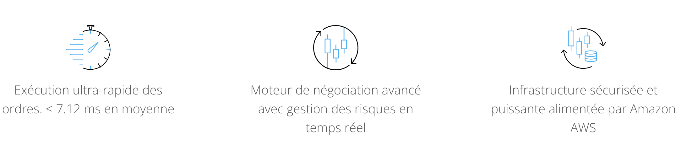 On notera aussi que le matériel de la plateforme est hébergé sur les serveurs d’Amazon Web Services (AWS), ce qui lui confère une capacité suffisante pour faire fonctionner son puissant et efficace moteur de trading.