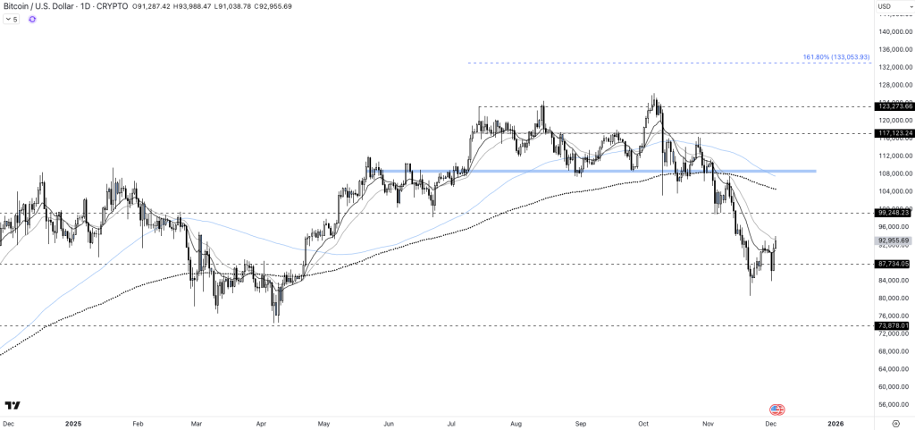 Un timing intéressant, lorsqu’on se rappelle qu’il y a moins de 24 heures, CZ s’attendait à une hausse du marché crypto très prochainement. Ainsi, après quelques semaines sous les 90 000 dollars, avec un passage sous l’EMA200 de l’unité de temps 3D, nous assistons à un rebond technique qui intervient à un moment idéal.