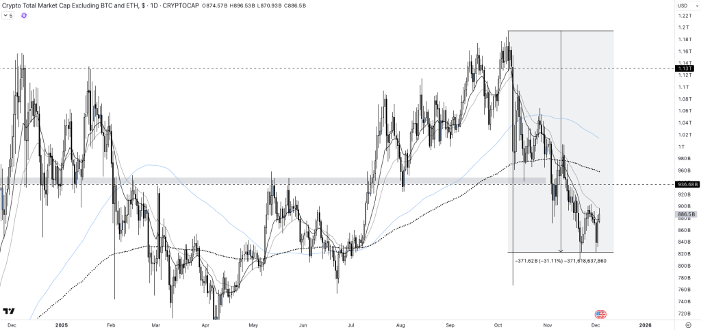 Si bitcoin et ethereum maintiennent une tendance haussière durant les prochains jours, en atteignant d’anciens supports, cela permettrait aux altcoins d’avoir le vent en poupe. Pour rappel, la capitalisation de ces actifs a chuté de plus de 30 %. Une telle dynamique alors que les stablecoins, en pleine croissance, sont inclus dans le calcul du graphique $TOTAL3.