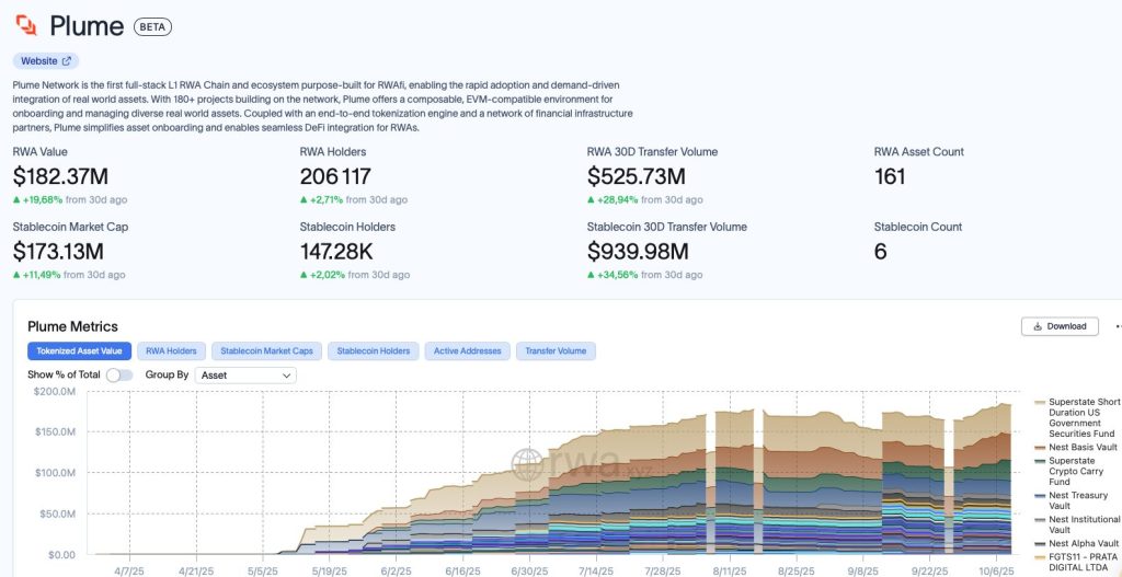 Plume Network est l’un des projets qui disposent de la meilleure traction, expliquant le retour de $PLUME à plus de 0,10 dollar. Cette blockchain, exclusivement construite autour des RWA, s’approche désormais des 300 millions de dollars de TVL (ATH en cours).