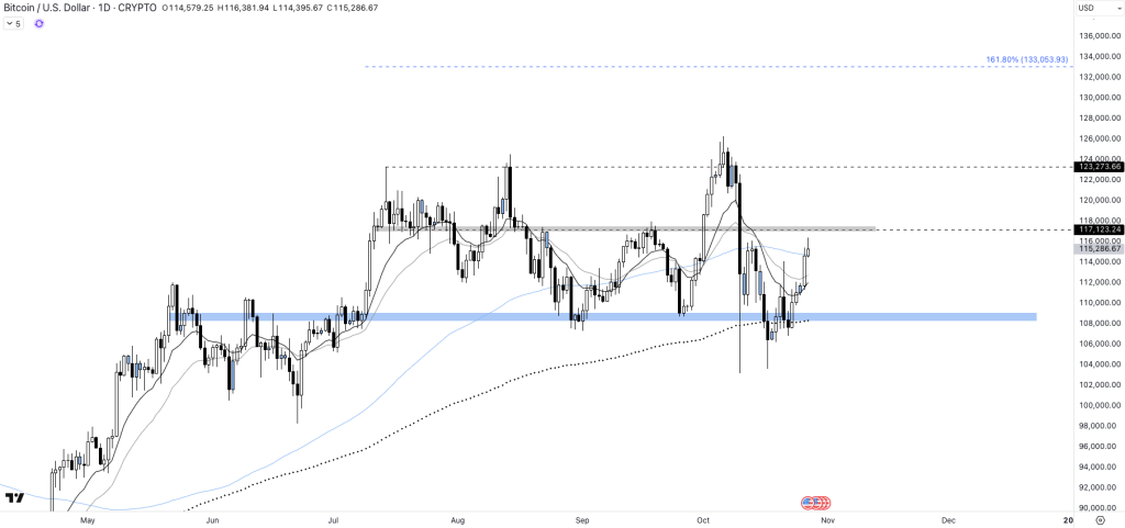 Configuration similaire pour Bitcoin ? La MA100 se retrouvant en-dessous du pivot technique, bitcoin bloque autour des 115 000 dollars plutôt que les 117 000 dollars. Cette zone est cruciale.
