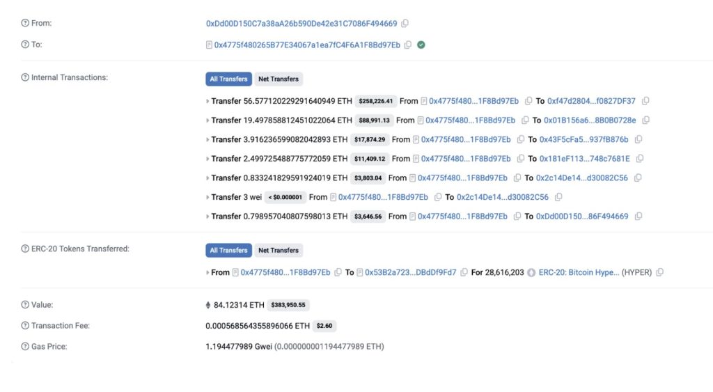 Plusieurs achats massifs ont contribué à faire en sorte que la prévente a dépassé la barre des 20 millions de dollars le 3 octobre 2025. Ainsi, le 2 octobre, deux baleines avaient cumulé 25,65 millions de HYPER. L’une d’entre elles a acheté 10,81 millions de jetons pour 140 000 $. L’autre a collecté 14,84 millions de jetons pour une valeur de 193 000 $.