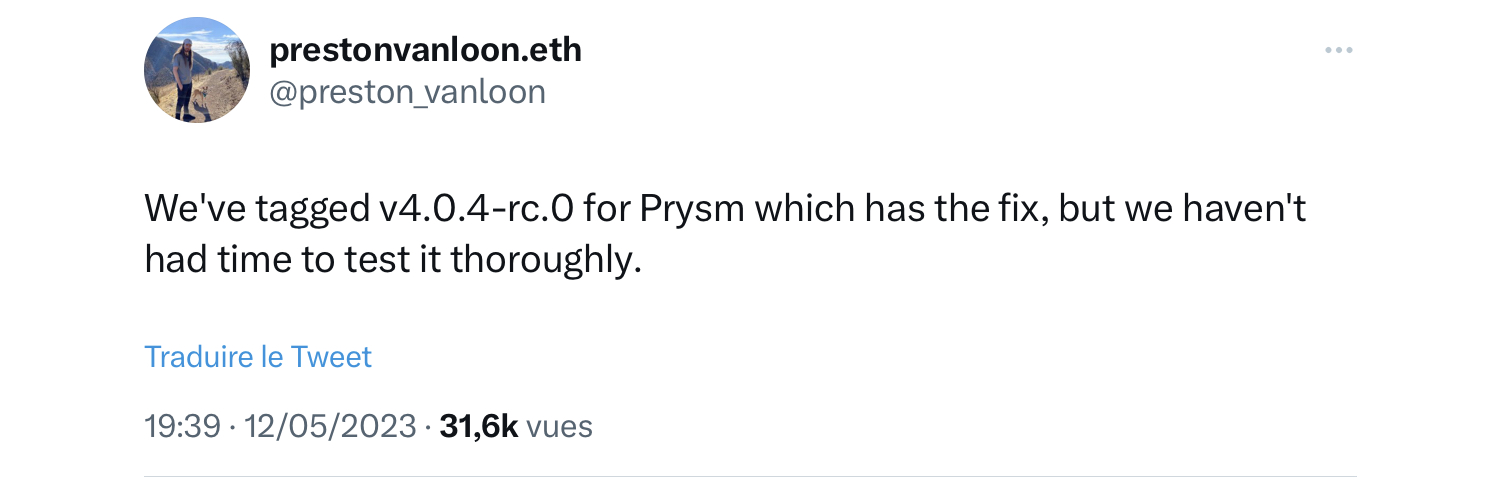 Les causes exactes de ces pannes ne sont pas encore connues. Les développeurs de la blockchain Ethereum, et notamment Preston Van Loon, Core Developer ETH et co-fondateur de Prysmatic Labs, ont tenté de rassurer la communauté en affirmant qu’il s’agissait d’un bug qui a été corrigé rapidement. Cependant, cela n’a pas empêché certains observateurs de s’inquiéter de l’impact potentiellement néfaste de ces pannes sur la réputation de la blockchain Ethereum.
