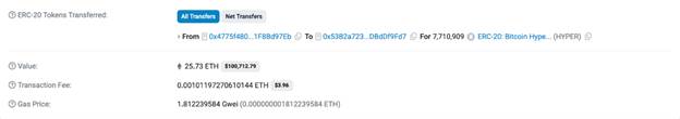 Un whale a acheté 7,7 millions de HYPER en une seule transaction. Cette opération représente environ 100 000 $.