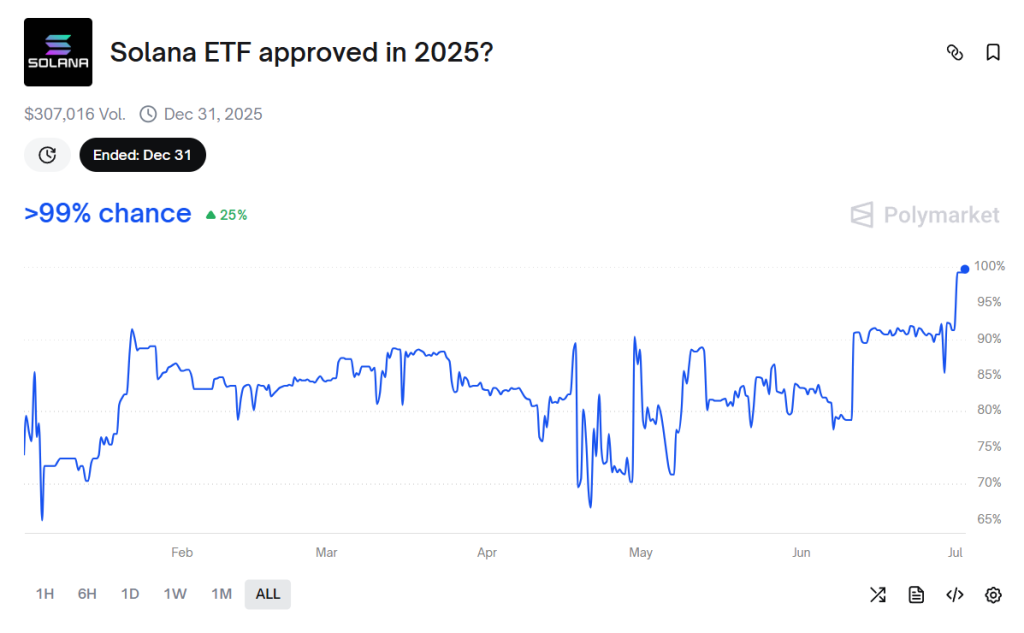 Les utilisateurs de Polymarket sont également extrêmement optimistes. Ils sont 99 % à envisager une issue favorable pour la validation des ETFs spot par la SEC. Si tel est le cas, Solana devient le premier altcoin après l’ETH à obtenir cette autorisation sur les marchés. Ce qui le place symboliquement en tête de peloton dans la course effrénée et très concurrentielle à laquelle s’adonnent les Ethereum-killers.