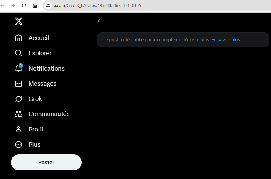 Mardi, dans un post désormais introuvable sur X, CrediX affirmait avoir négocié un accord avec le hacker. Selon cette version, les fonds devaient être restitués sous 48 heures, en échange d’un paiement depuis la trésorerie du protocole. L’équipe promettait alors de rembourser intégralement les utilisateurs via un airdrop.