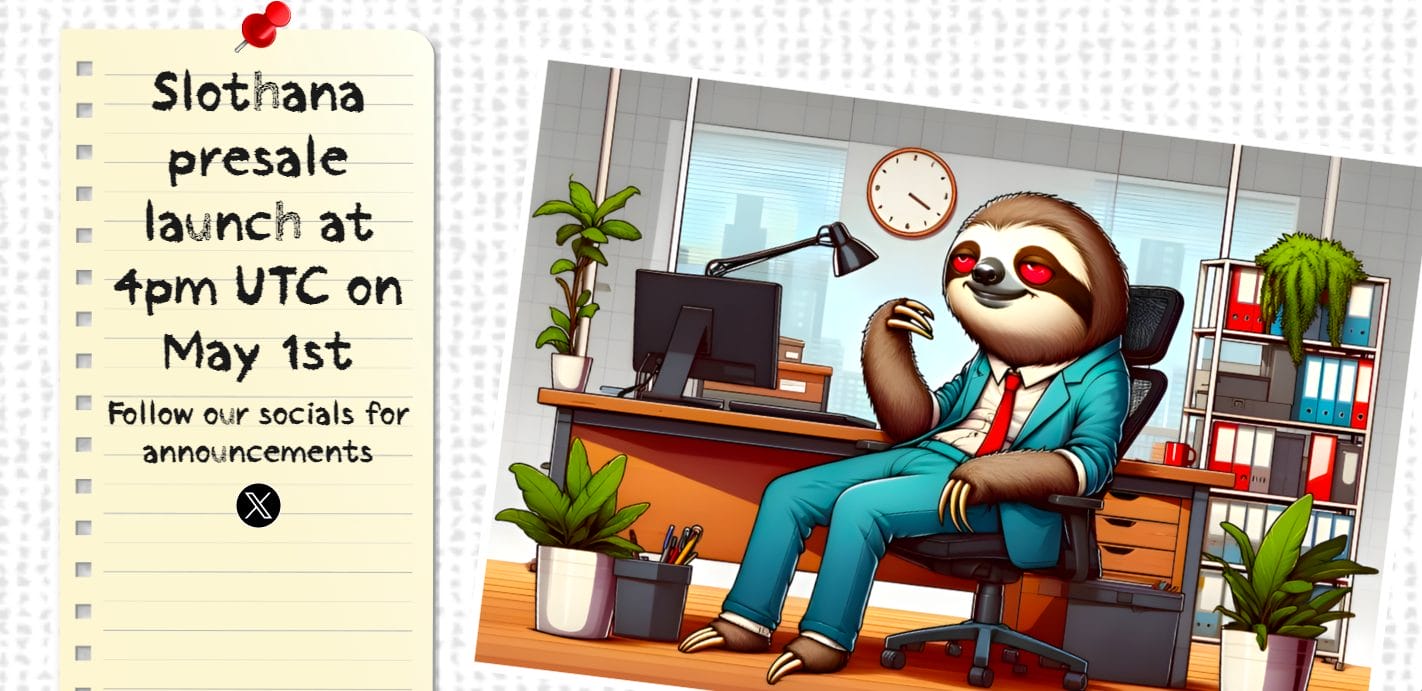 Présentée comme « la première apparition de la liquidité de Slothana le premier jour de mai à 16:00 UTC », l’airdrop marquera la prochaine étape du plan du token sloth pour dominer le secteur des memecoins saturé de chiens.